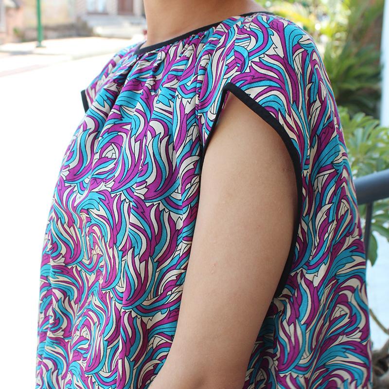 たっぷりのギャザーで、ボディーラインを拾わず、